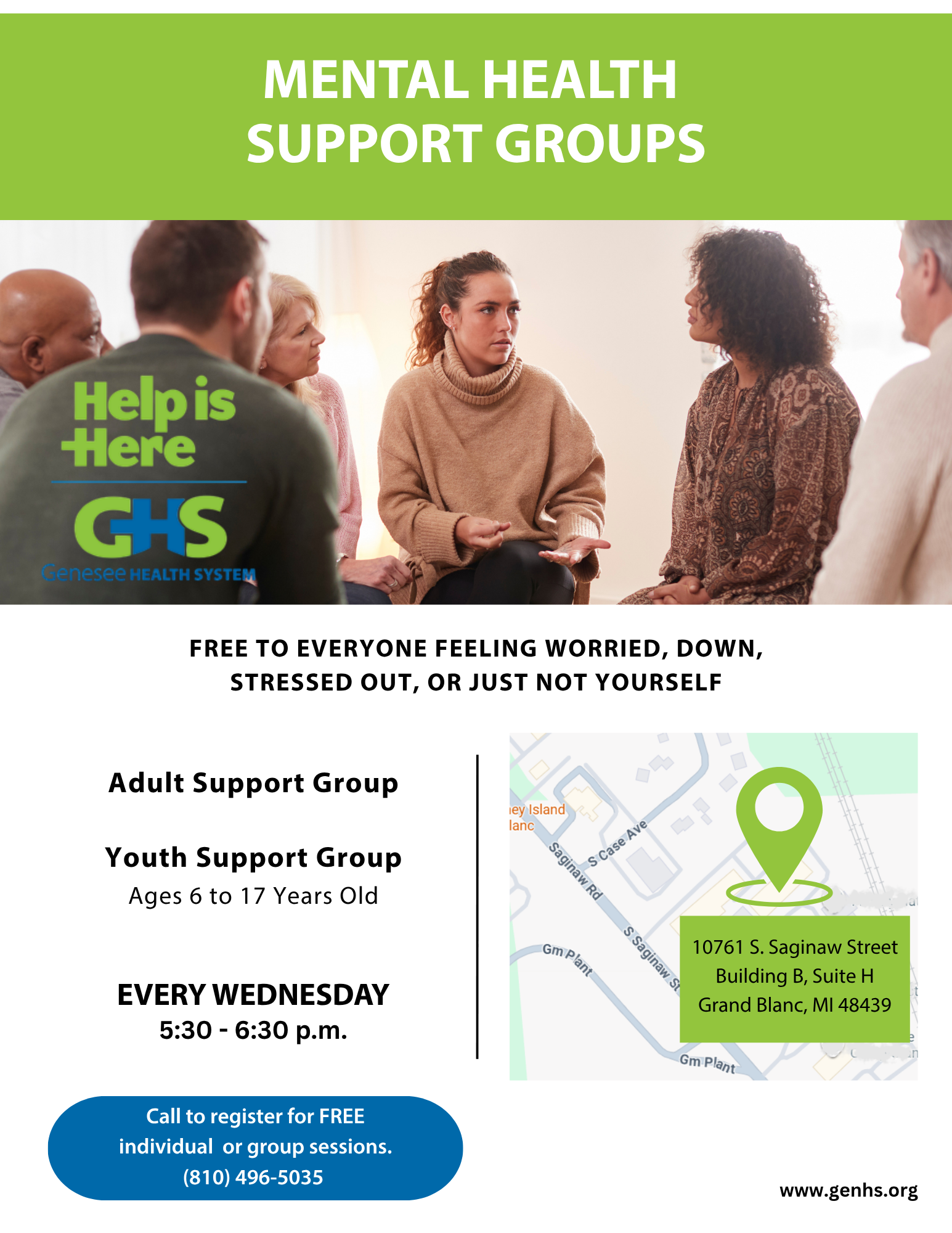 FOR IMMEDIATE RELEASE 10/04/2025 Genesee Health System Offers Mental Health Support at Grand Blanc-McFarlen Library GENESEE COUNTY, MI – Genesee Health System (GHS) continues to support Genesee County families and the community during this difficult time with walk-in mental health support at the Grand Blanc-McFarlen Library, 515 Perry Rd., Grand…